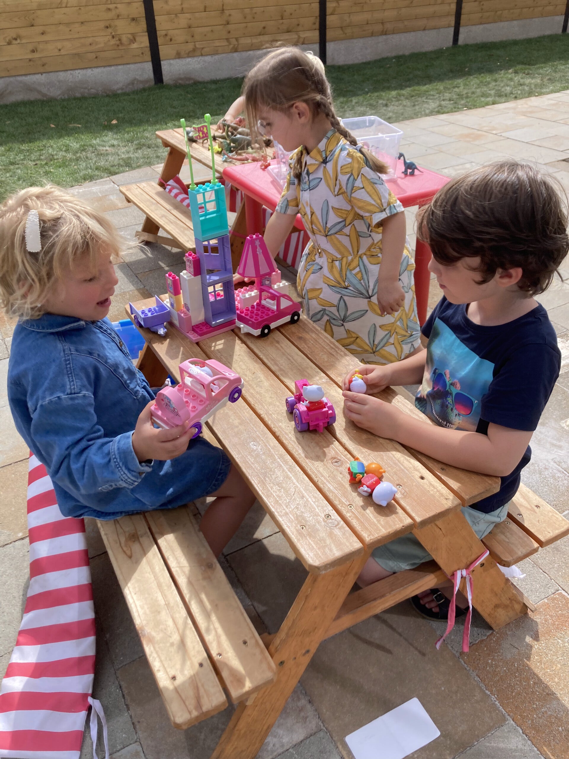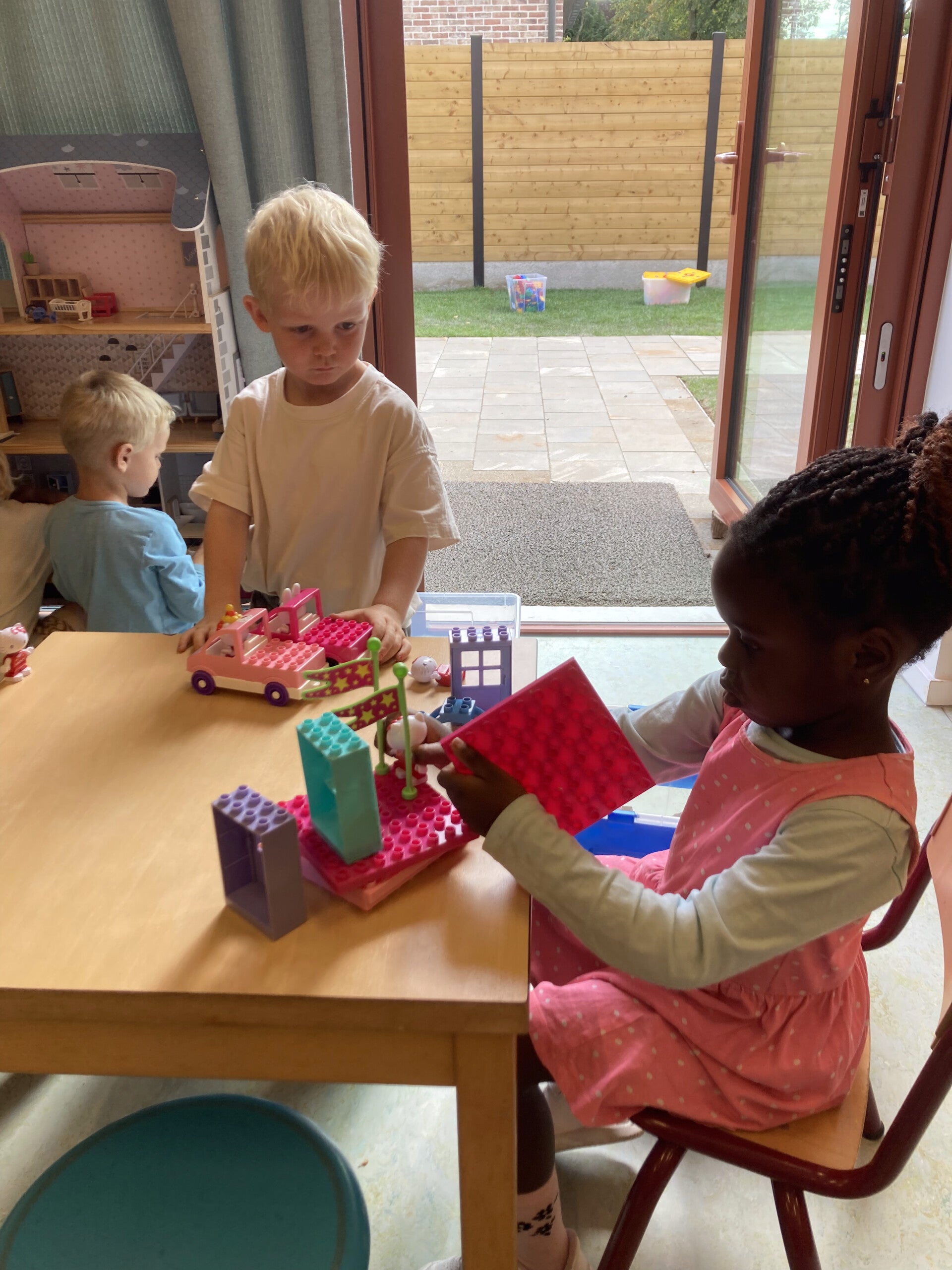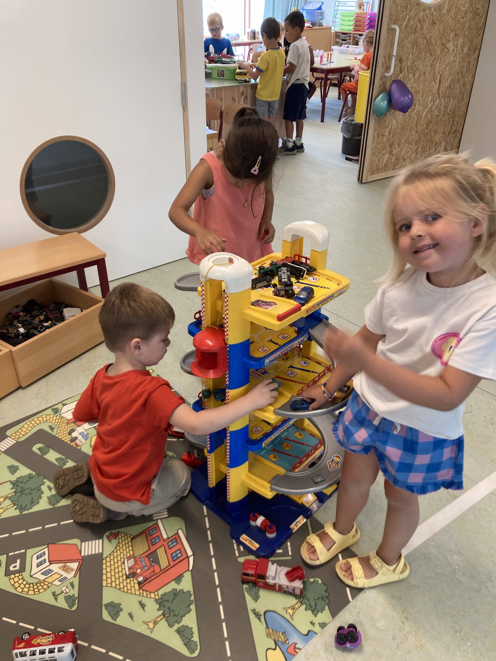 -We een leuk terras hebben aan onze klas waar we bij goed weer ook mogen spelen.