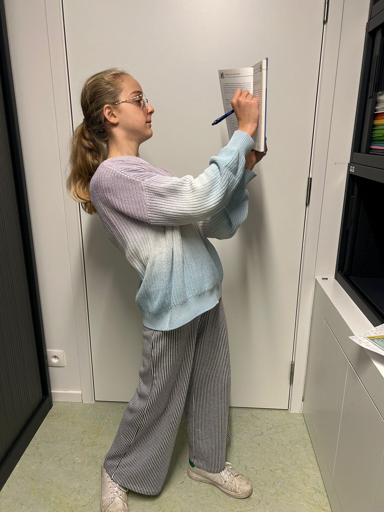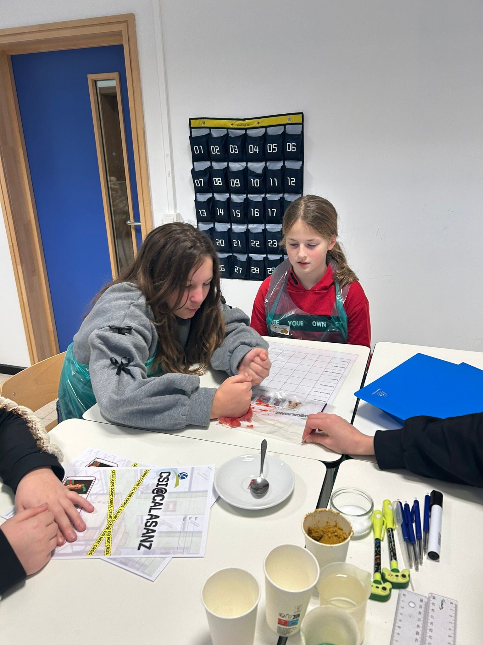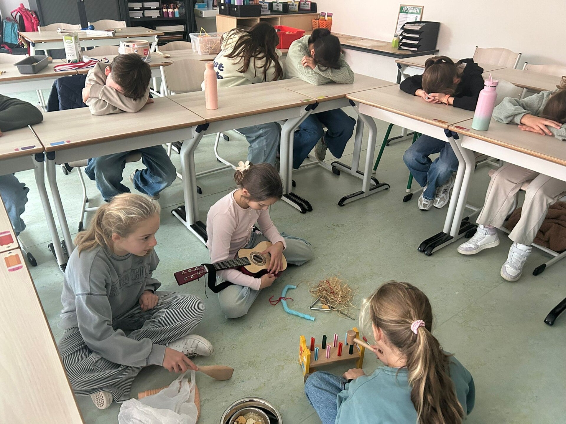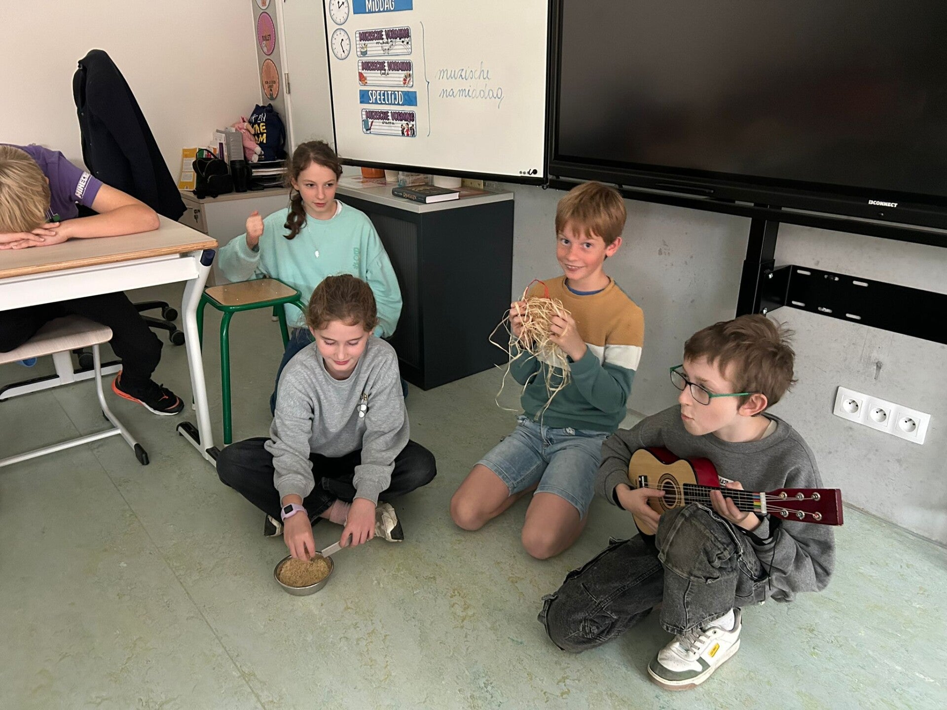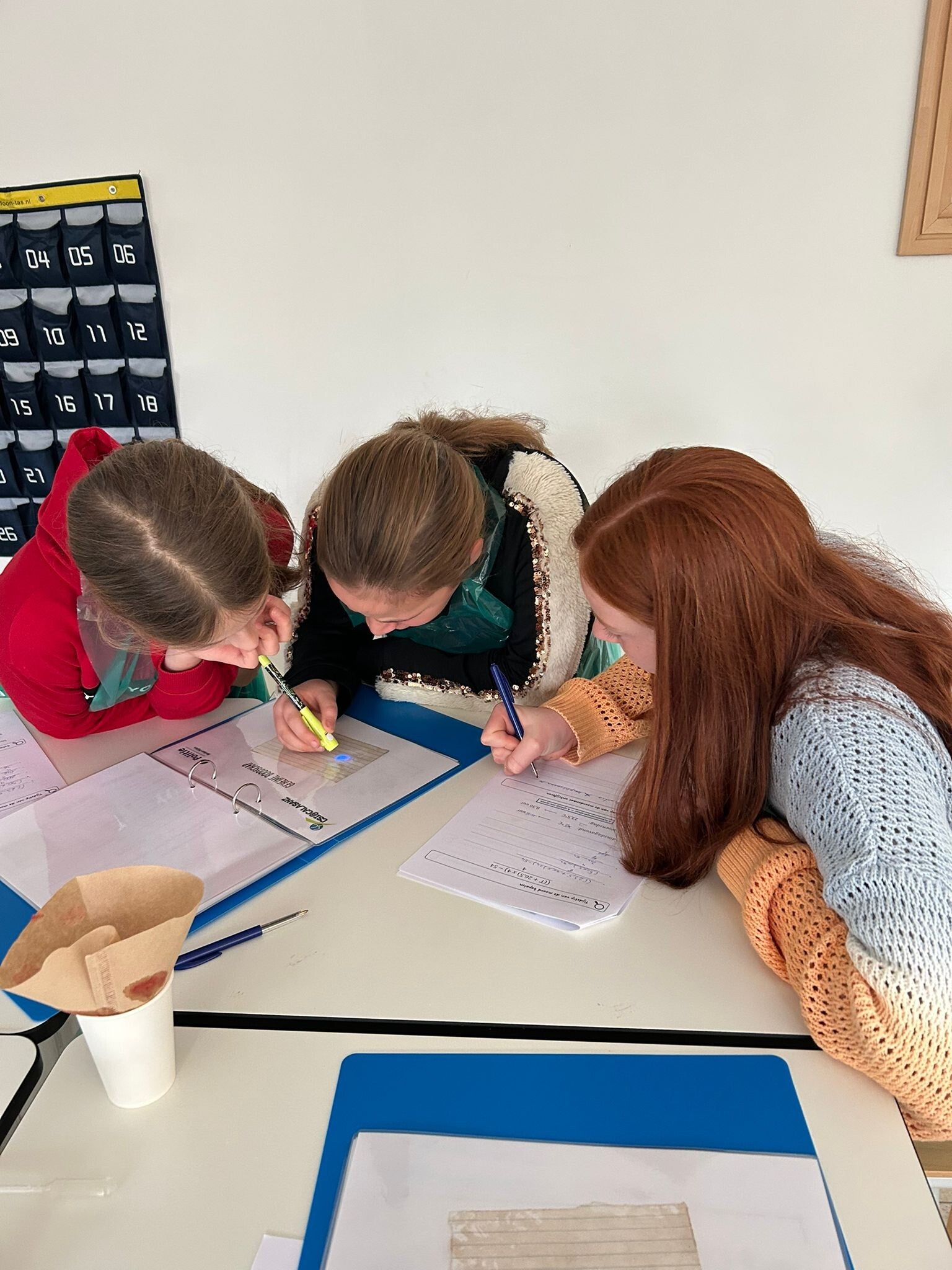 De eeuwenband en wereldkaart hangt nog niet aan de muur in onze nieuwe klas. Perfect om er eerst nog mee aan de slag te gaan.
