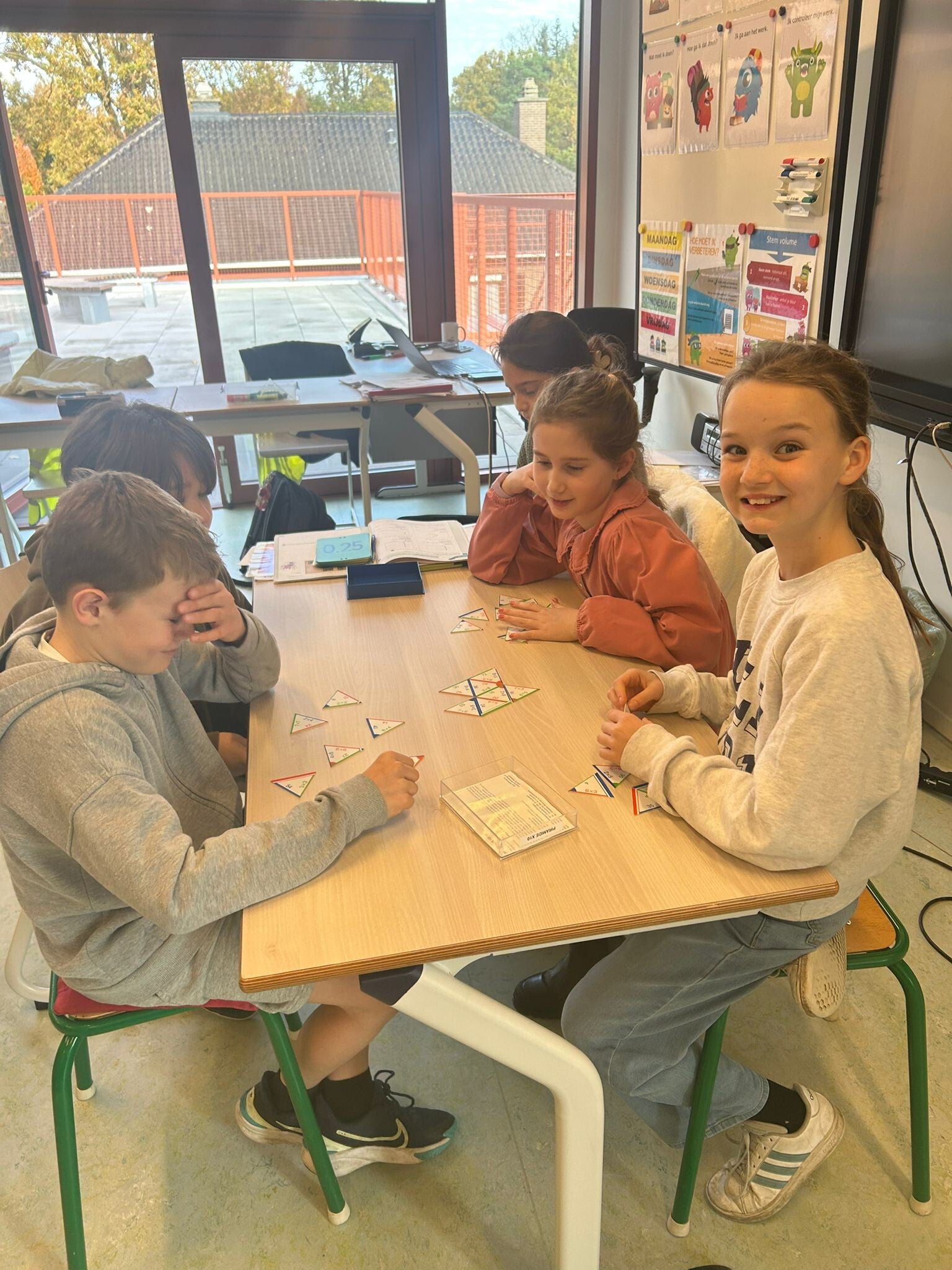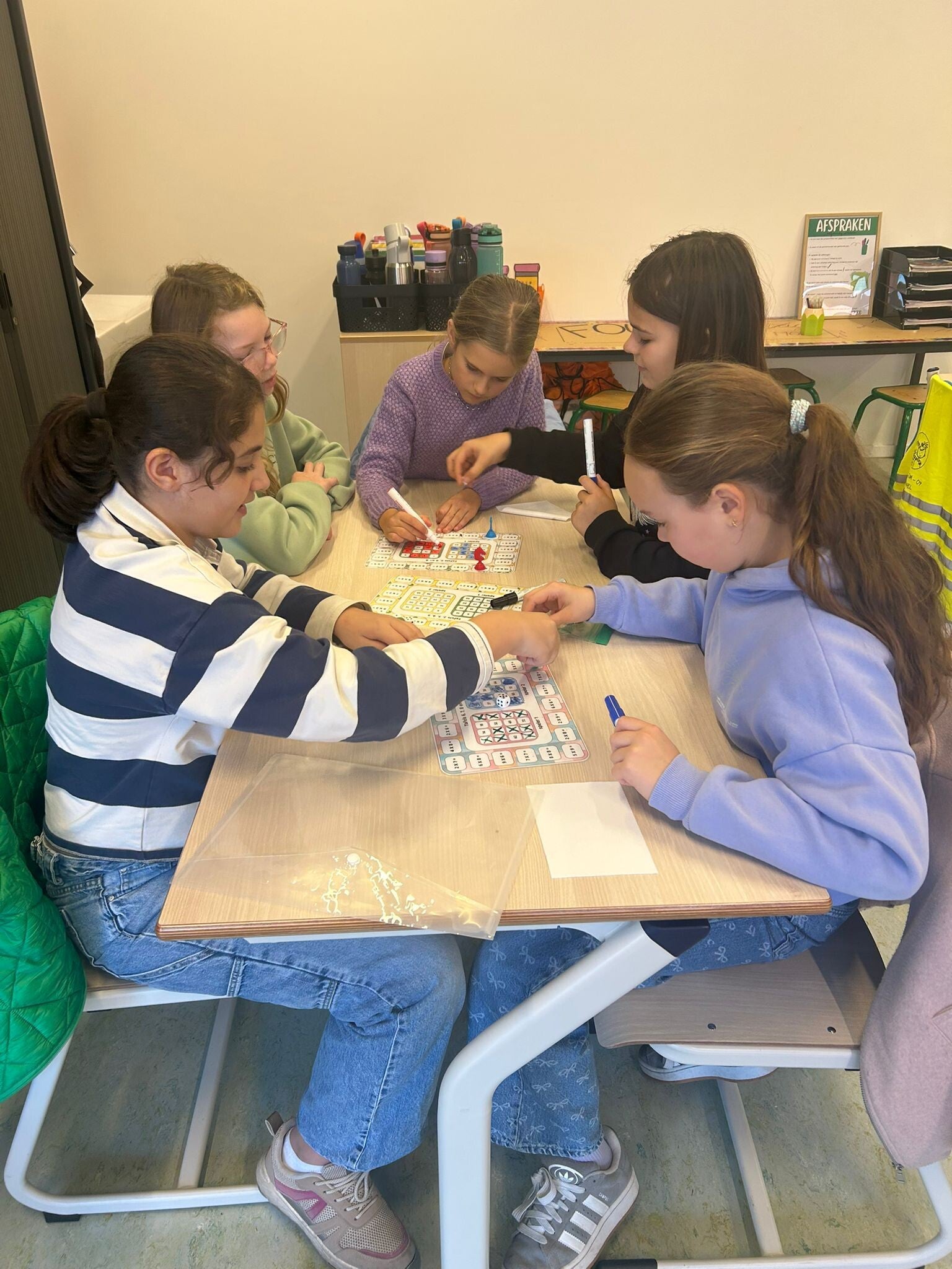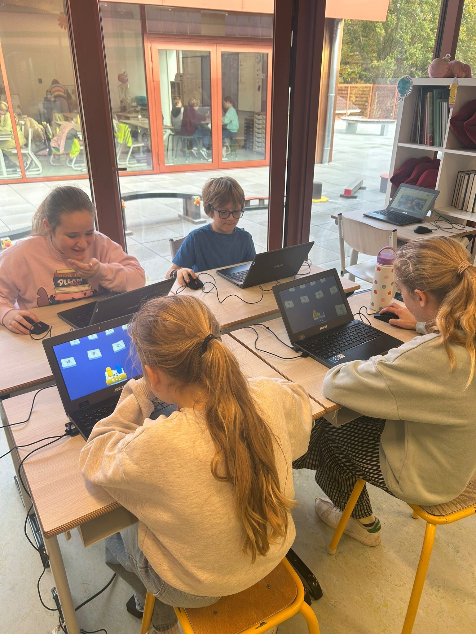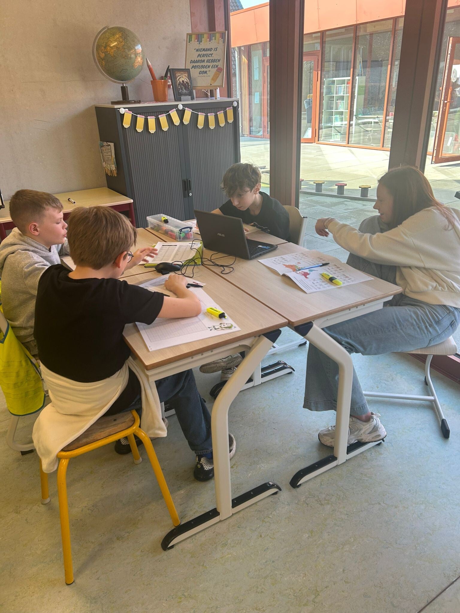 We werken samen met klas 4 en 5 aan onze basisvaardigheden! Vandaag stonden alle activiteiten in het teken van de maal- en deeltafels.