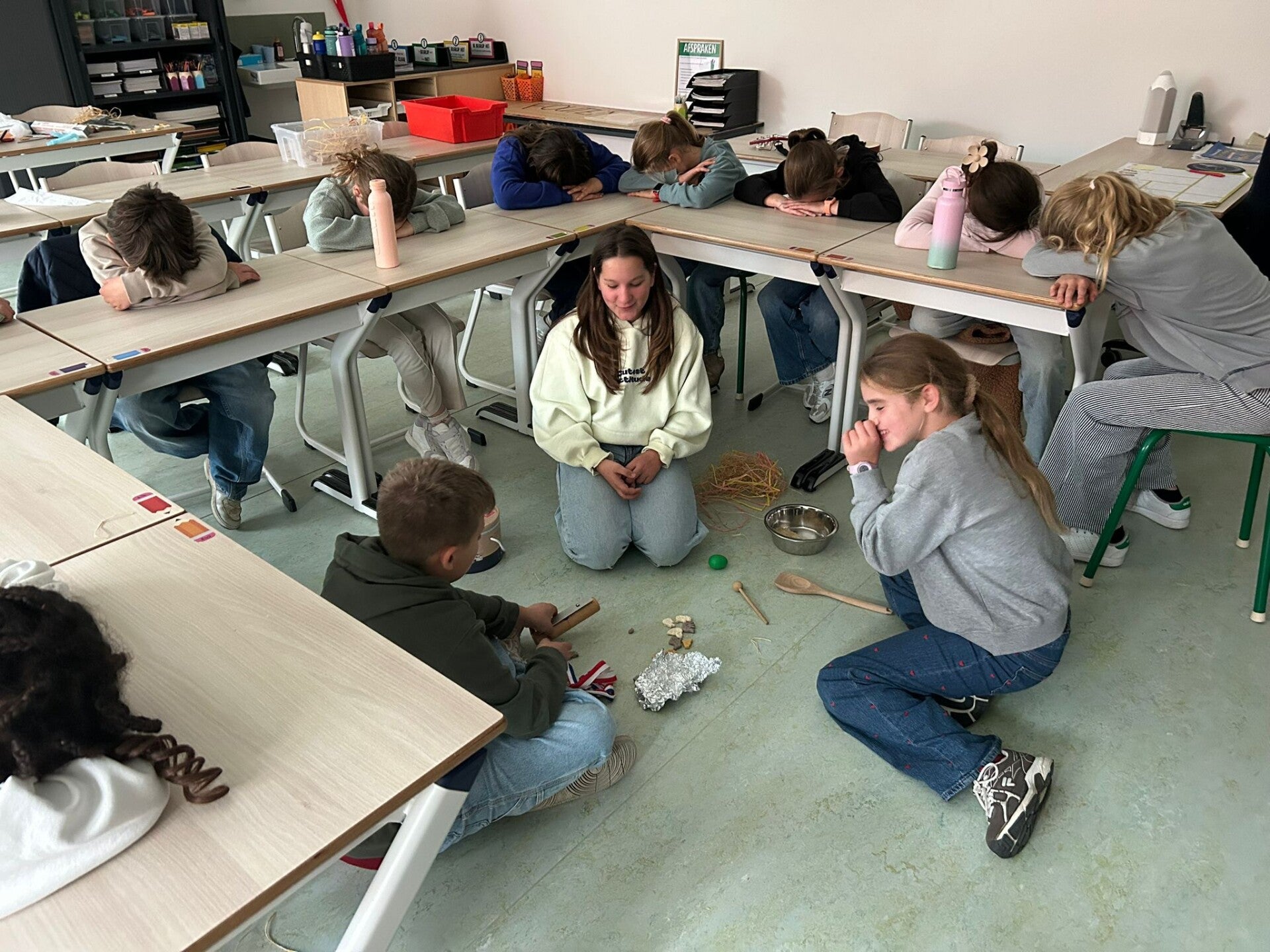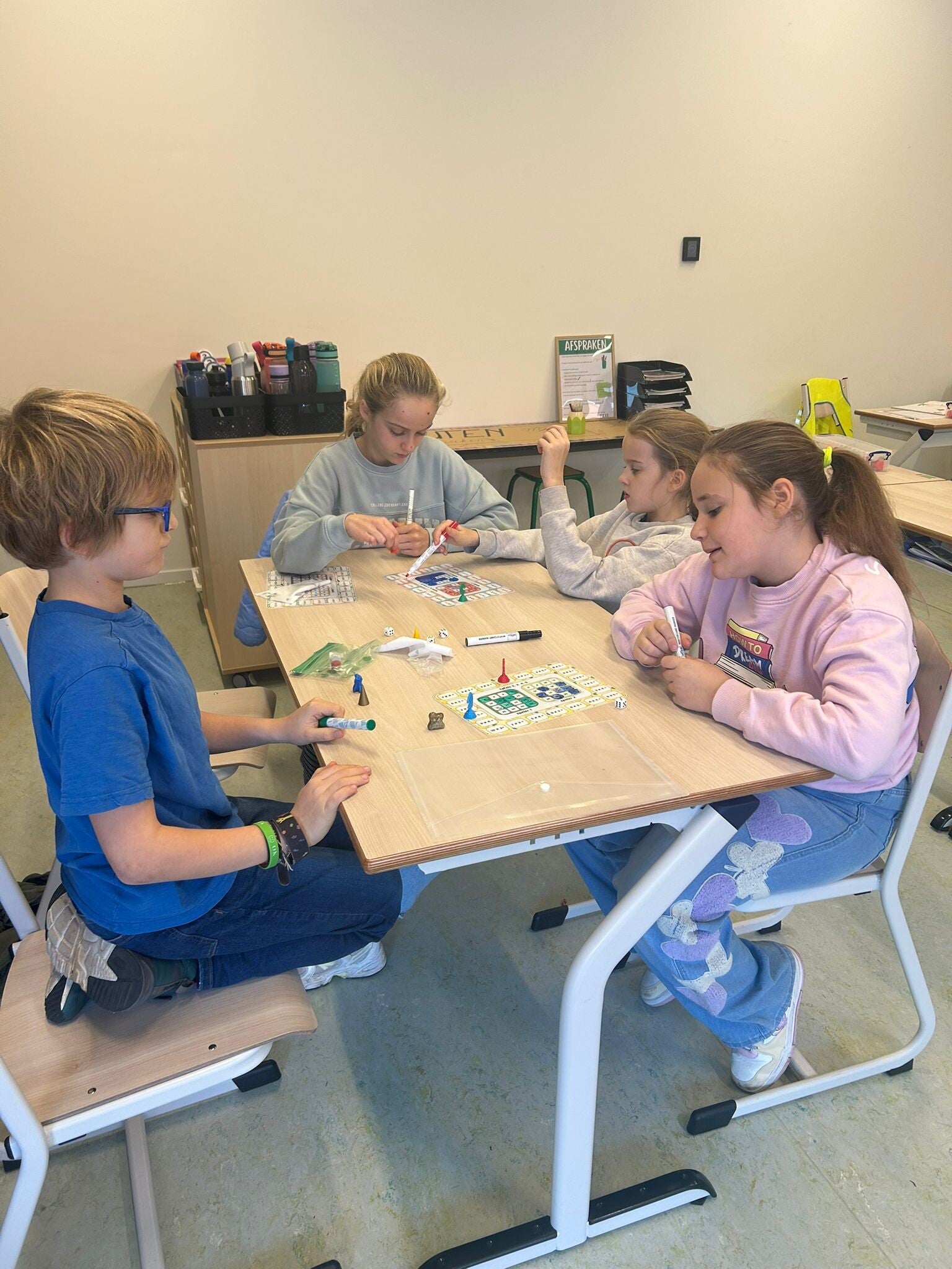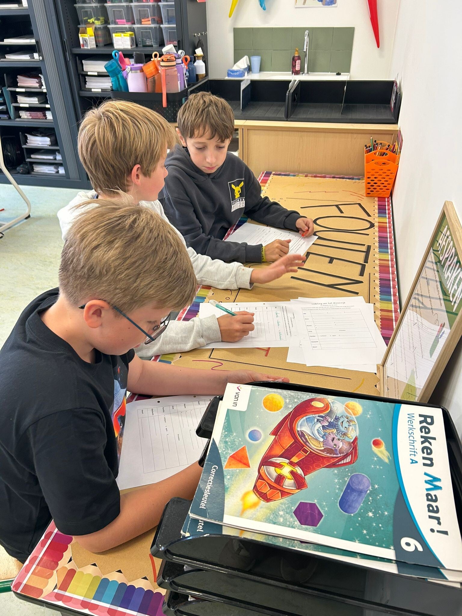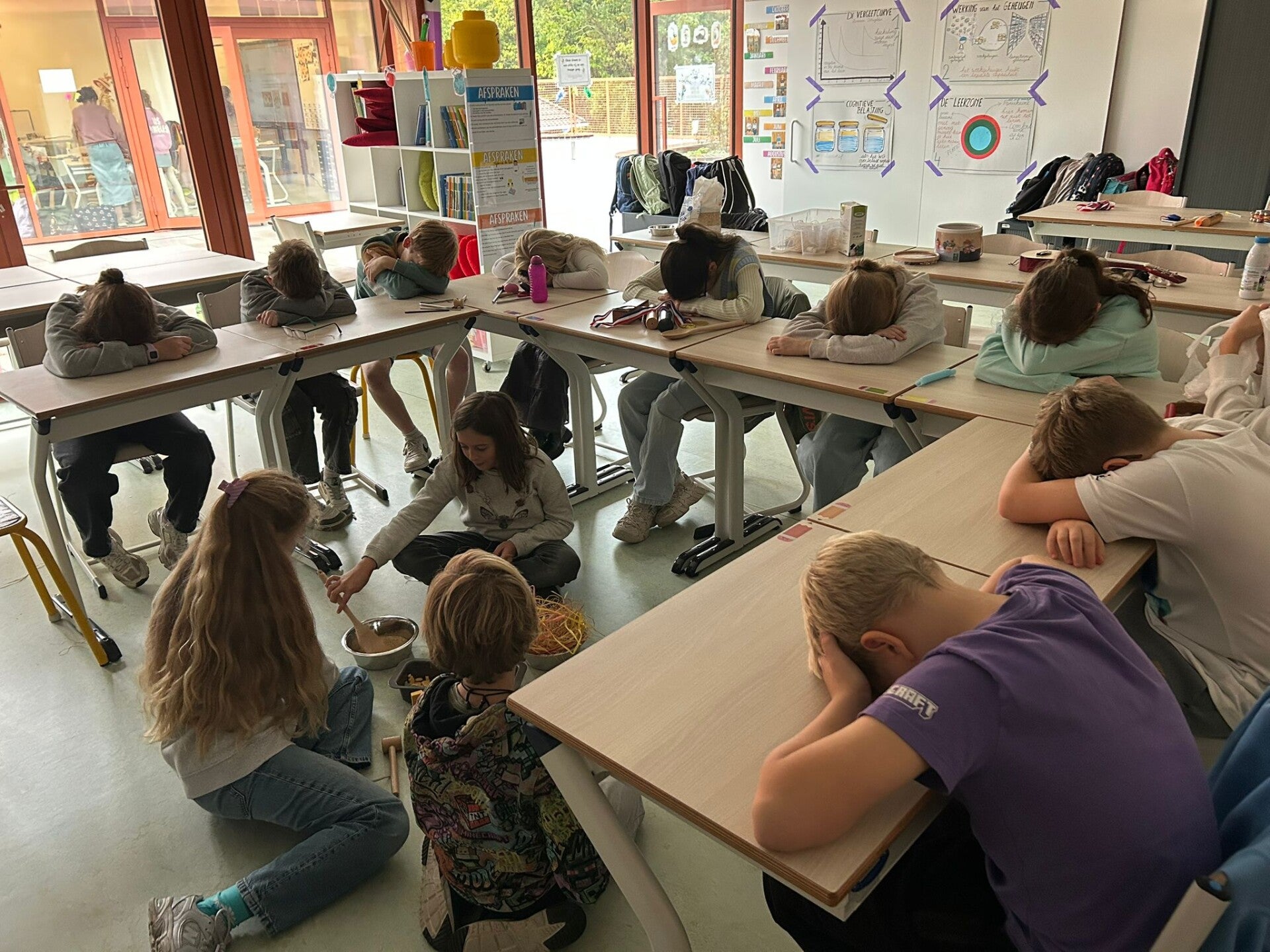 We werken samen met klas 4 en 5 aan onze basisvaardigheden! Vandaag stonden alle activiteiten in het teken van de maal- en deeltafels.