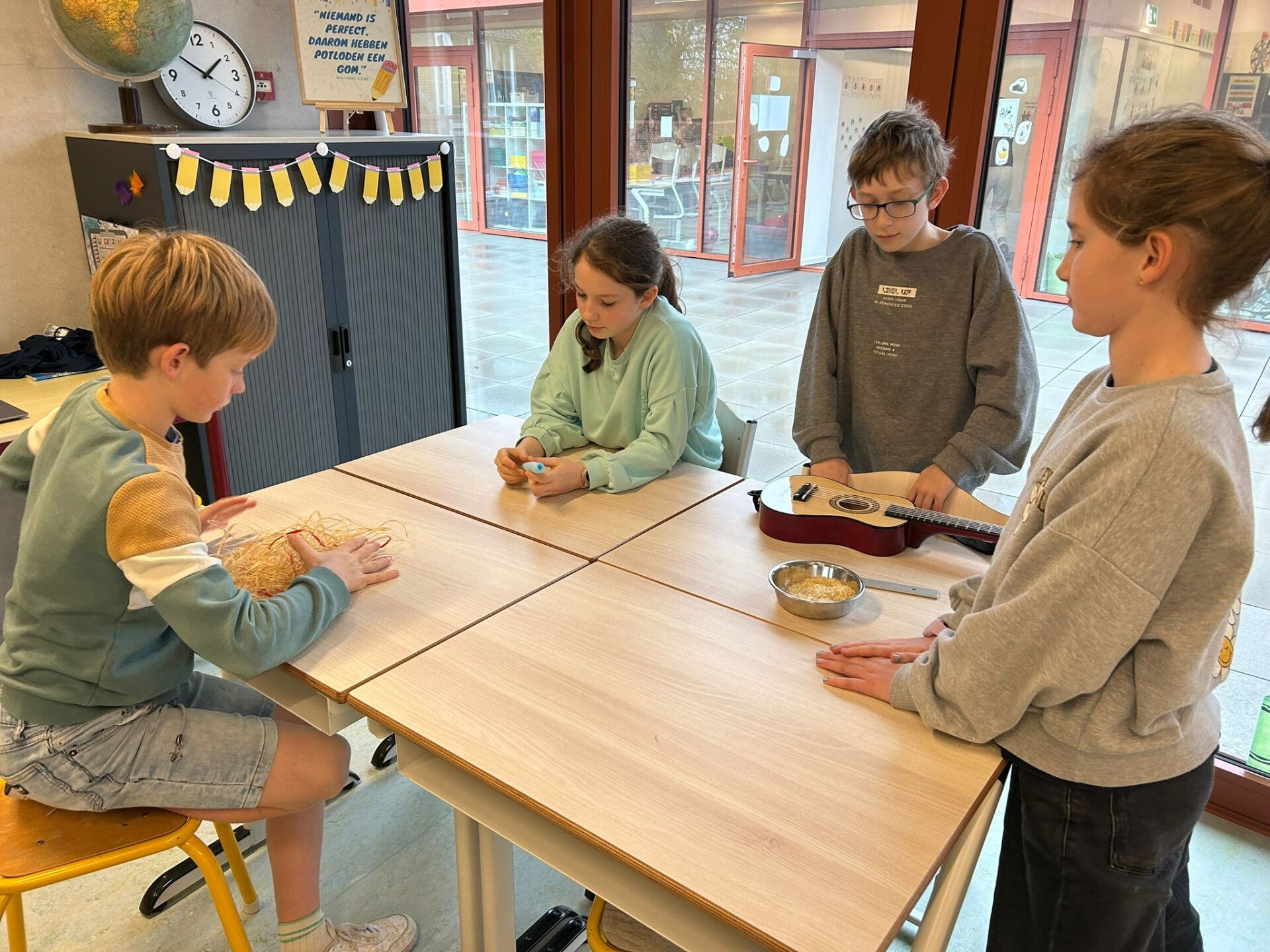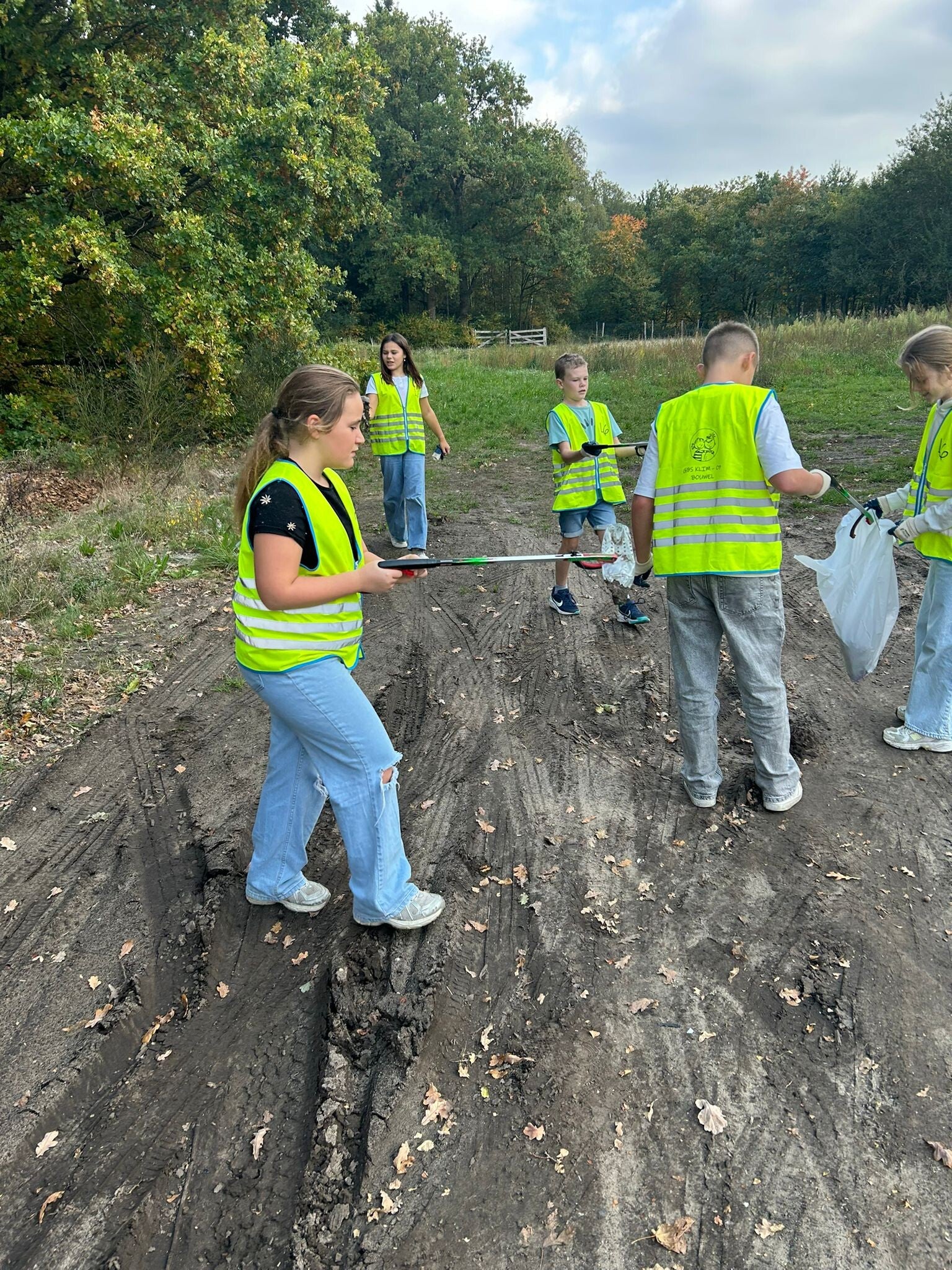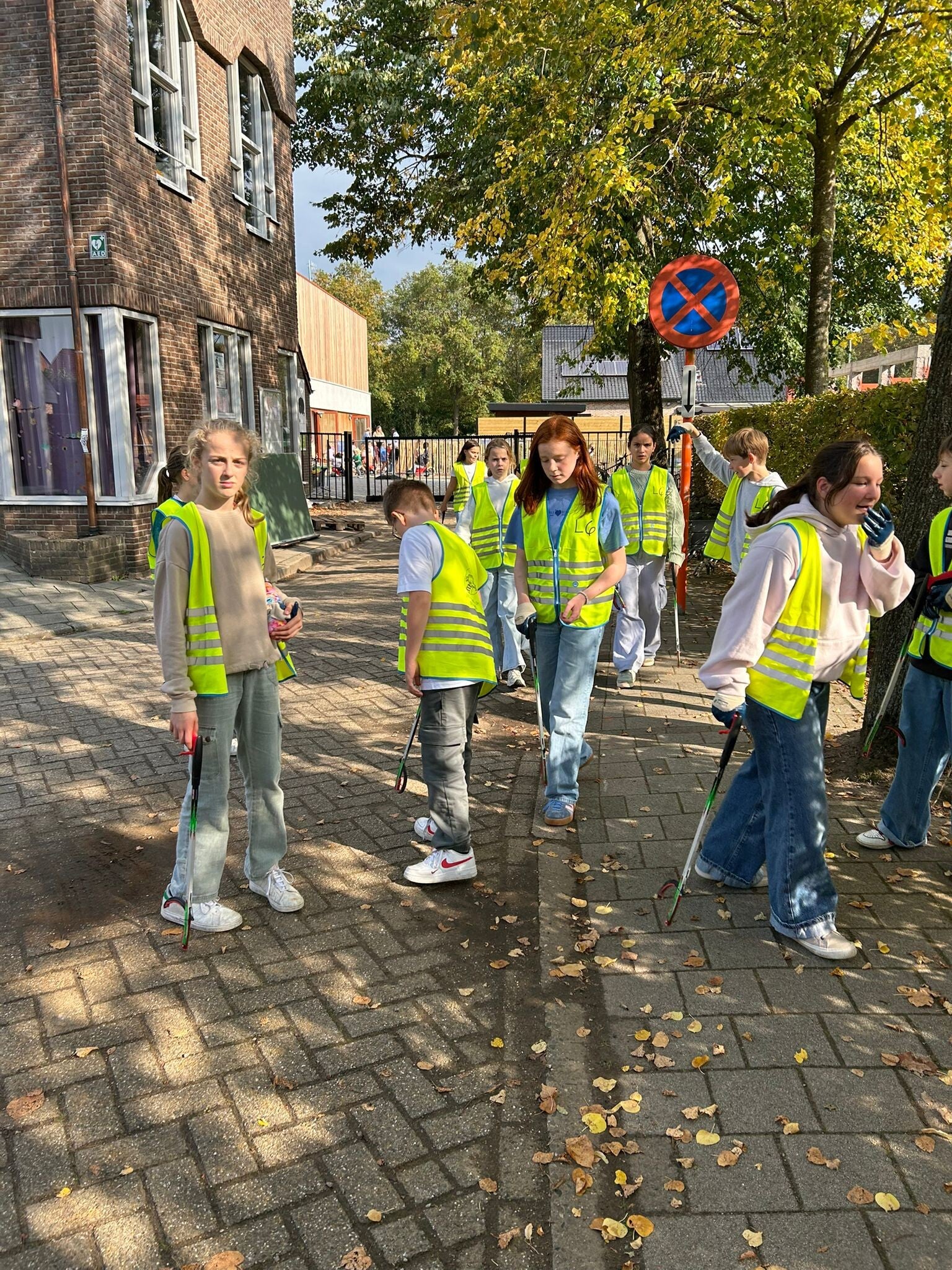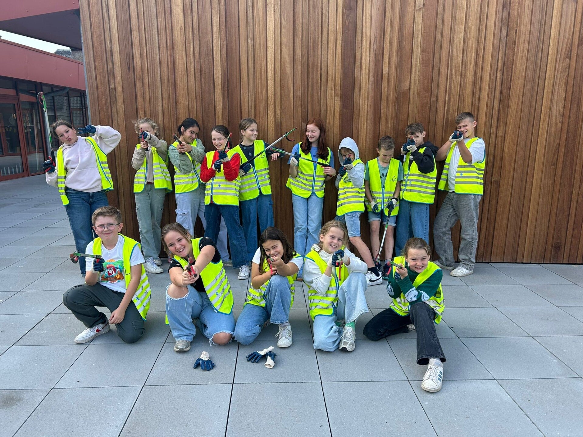 4 zakken met zwerfvuil later keren we voldaan terug naar de school.