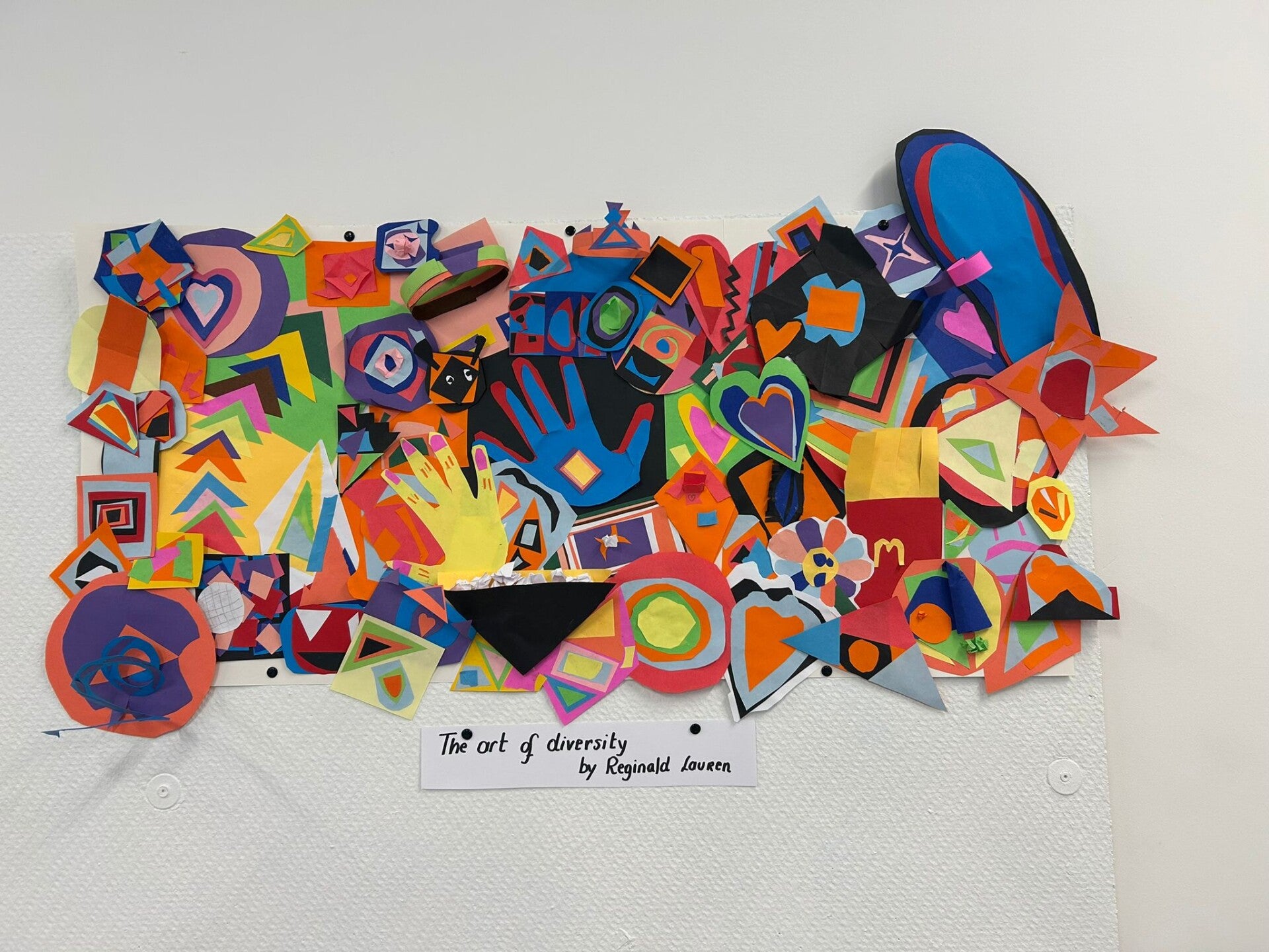 We maken een klaskunstwerk gebaseerd op het werk van Reginald Laurent. Na heel wat knip- en plakwerk krijgen we een mooie compositie.